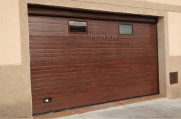Puerta Residencial seccional imitación madera con vetanas de climalit medidas 4500 x 3300