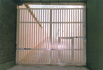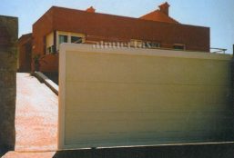 Puerta Corredera y peatonal construidas con panel de sándwich de cuarterones