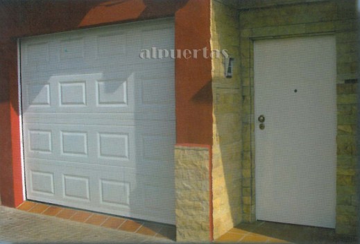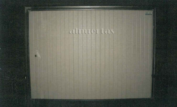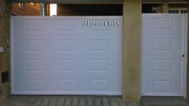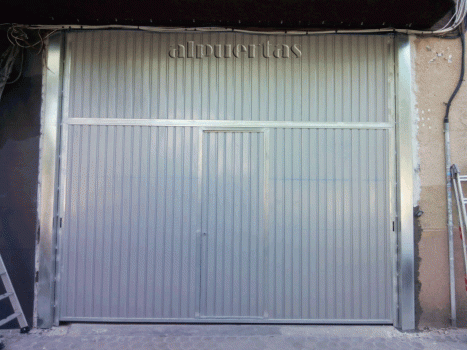 Puerta basculante con peatonal incorporada y chapa silver metalic de 5000 x 5000