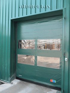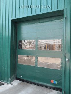 Puerta Rápida PVC autorreparable con mirillas para alta visivilidad de medidas 2500 x 3000