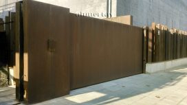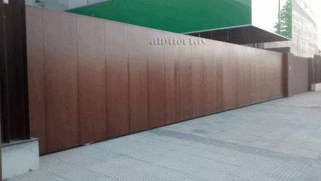 Puerta Corredera en acero corten sin soldaduras visibles de 15000 x 2250 automatica